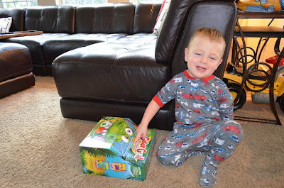 My boy rocked out Saturday and took almost a FOUR-hour nap and then slept straight through the night. He continues to ask for the paci at bedtime, but once I remind him that he gave them to the baby, he seems content and goes right to bed. I am so proud! And of course, the special treat arrived....